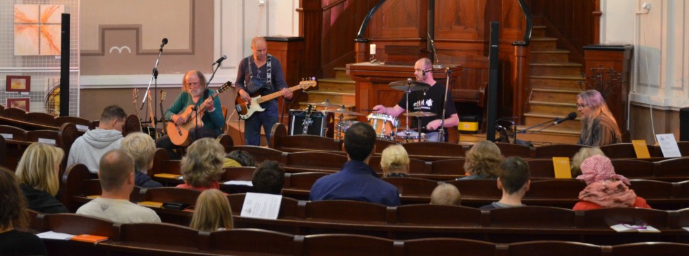 Po krátké odmlce, z důvodu letních prázdnin, pokračují tradiční hudební nešpory. Tentokrát byl podvečer první zářijové neděle ve znamení legendární folkrockové kapely OBOROH. Součástí večera byla i vernisáž výstavy obrazů paní Daniely Tinkové ze sboru v Praze – Kobylis, která je pořádána v rámci projektu Galerie u Jižního. O moderování večera a krátké kázání se postaral farář sboru Luděk Korpa. Všem zúčastněným děkujeme za jedinečný zážitek.