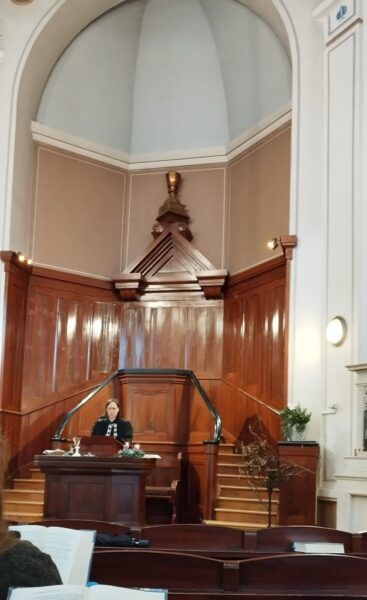 Bohoslužby se slavením sv. Večeře Páně vedla a kázáním sloužila sestra farářka Kristýna Kupfová.