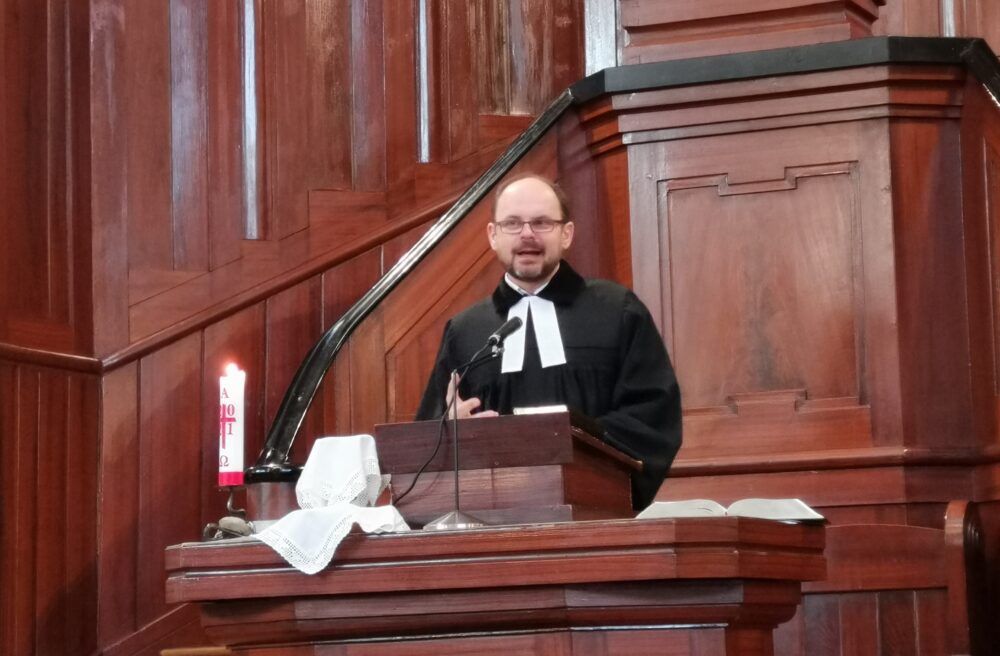 Bohoslužby se slavením sv. večeře Páně vede a kázáním slouží výpomocný kazatel br. Jiří Tomášek.