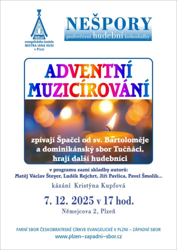 2. adventní neděle 7. prosince 2025 Bohoslužby se slavením sv. Večeře Páně vede a kázáním slouží sestra farářka Kristýna Kupfová.