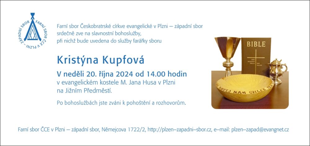 20. neděle po sv. Trojici 2. listopadu 2025 Bohoslužby se slavením sv. Večeře Páně vede a kázáním slouží sestra farářka Kristýna Kupfová.